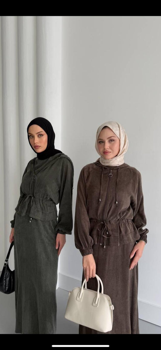 Smoky Grey Qupra Set Zipper jacket & Sleeveless Dress