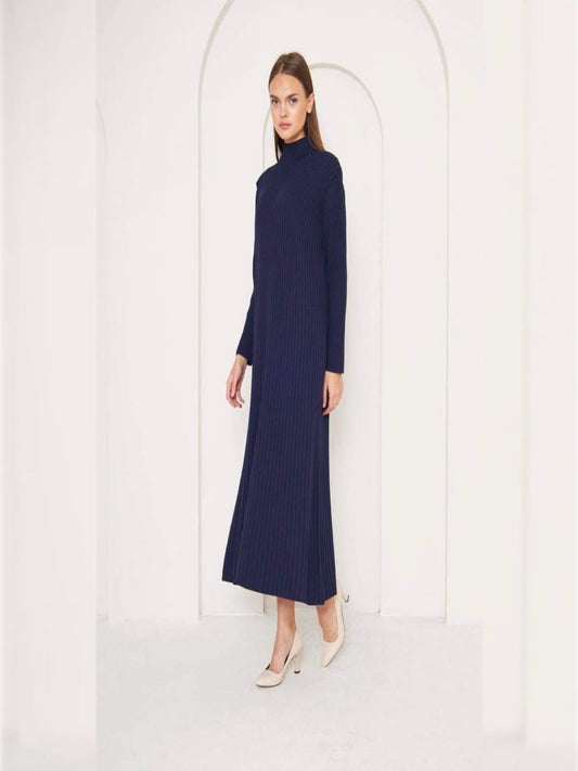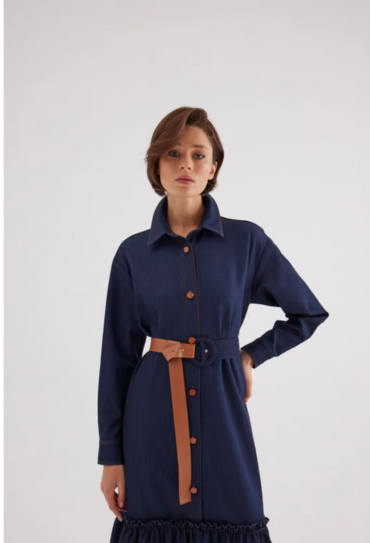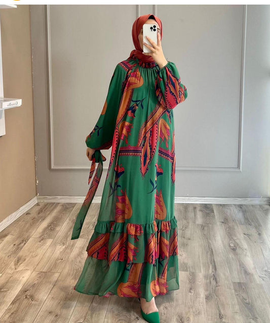 Blossom Blue Cotton Dress with Green Pattern for Summer