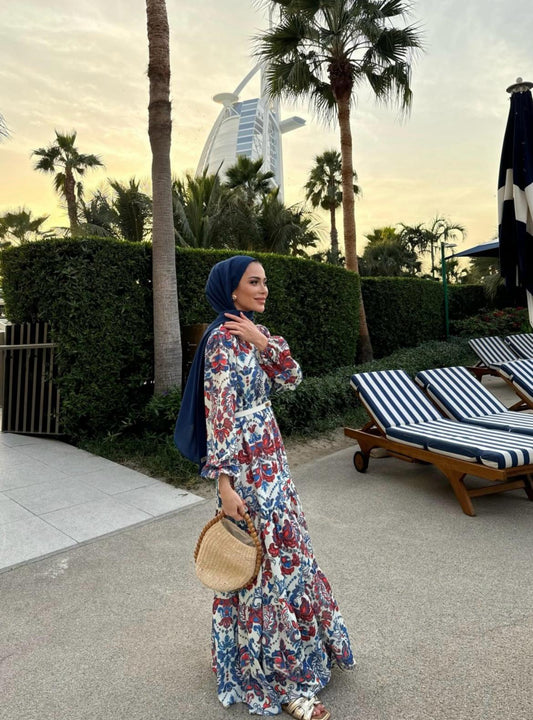 Floral Printed Baby Blue Summer Dress Blossom Collection