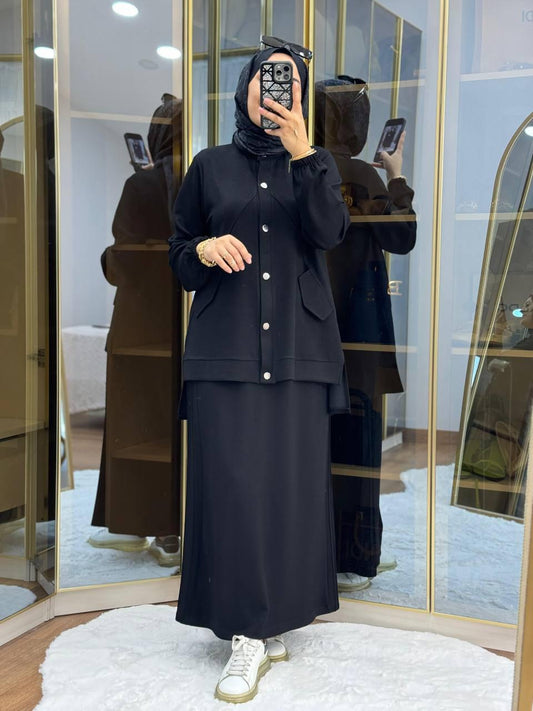Everyday Elegance Cotton Skirt Set Navy Blue & Black Options