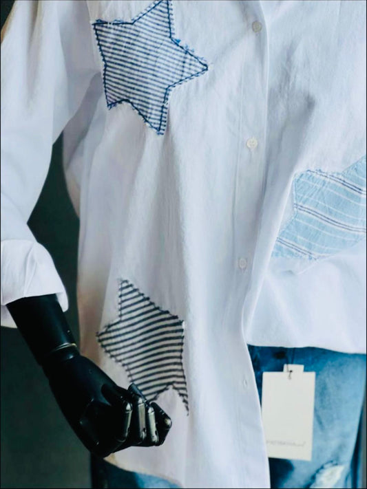 New Blossom Collection Linen-Cotton White Shirt with Star Pattern