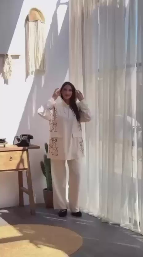 Master the art of refined casual dressing with this beige track suit, a wardrobe essential that bridges comfort and sophistication. The coordinated two-piece set combines a structured jacket with tailored trousers in a universally flattering neutral shade. Built with premium construction, this ensemble offers the relaxed fit of athleisure without compromising on polish. The understated beige palette serves as a versatile foundation for layering or standalone wear, making it an invaluable piece for any modern closet. Perfect for those who demand both quality and versatility in their everyday pieces.