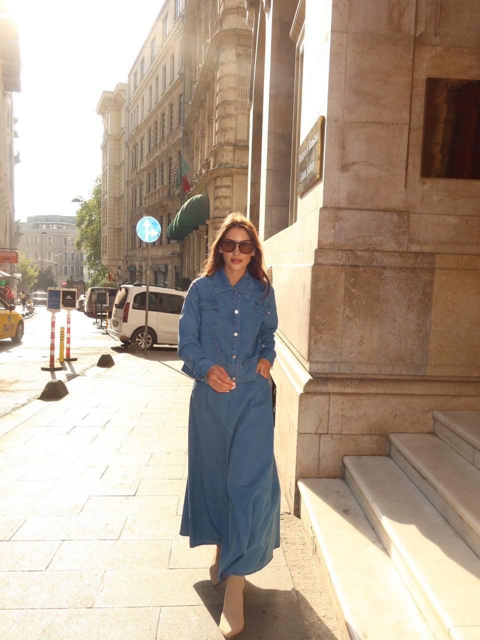 This denim skirt and top ensemble delivers sophisticated versatility for the modern wardrobe. The coordinated set features premium denim construction designed to withstand regular wear while maintaining its shape and color integrity. Wear the pieces as a unified look for polished coordination, or style them separately to expand your outfit possibilities. The timeless aesthetic works across multiple seasons and occasions, making it an investment-worthy addition to any closet. Ideal for those seeking quality basics that balance durability with contemporary appeal.