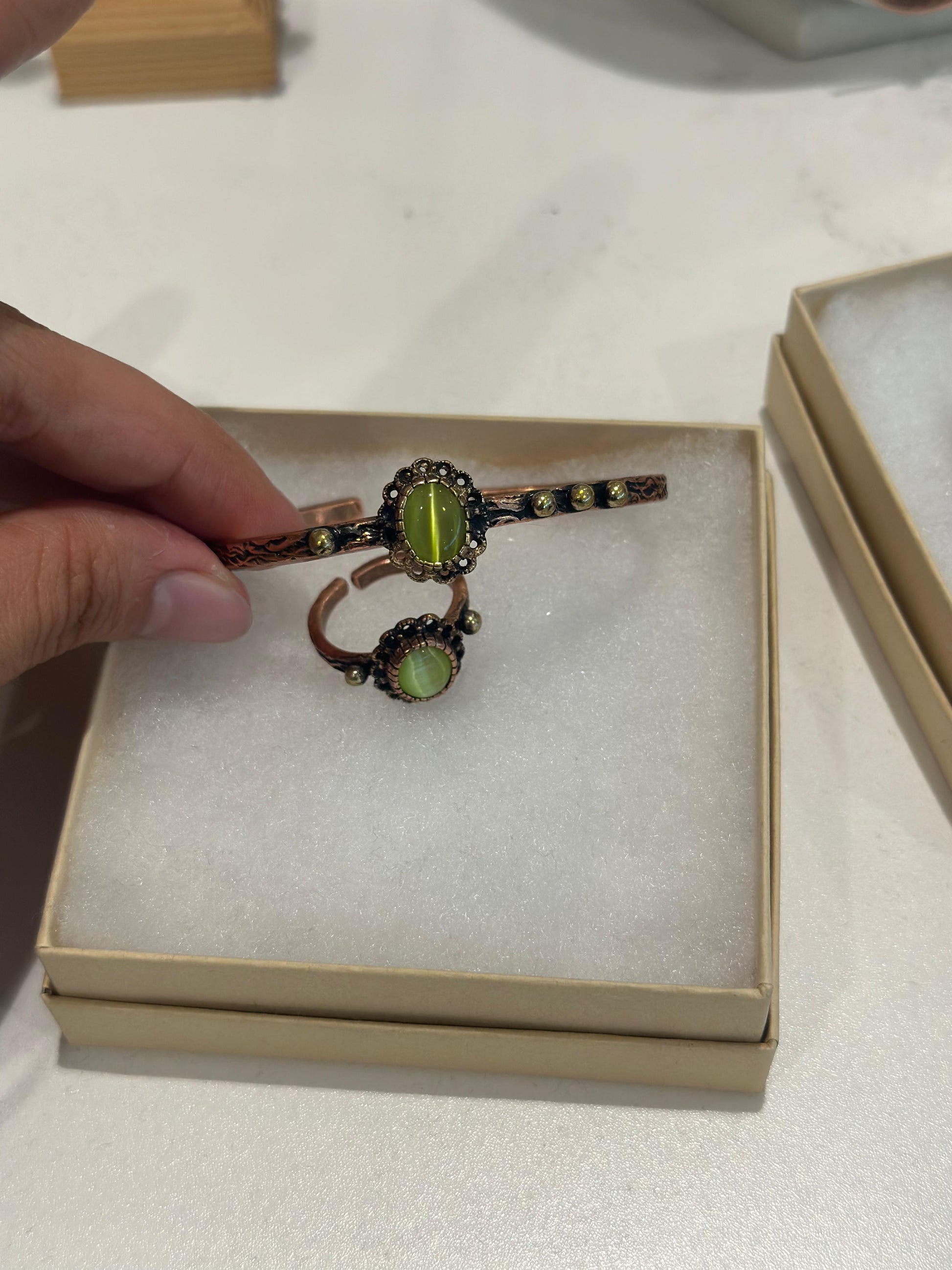 Handmade Copper Bracelet Ring Set– Adjustable Minimalist Bangle/Ring