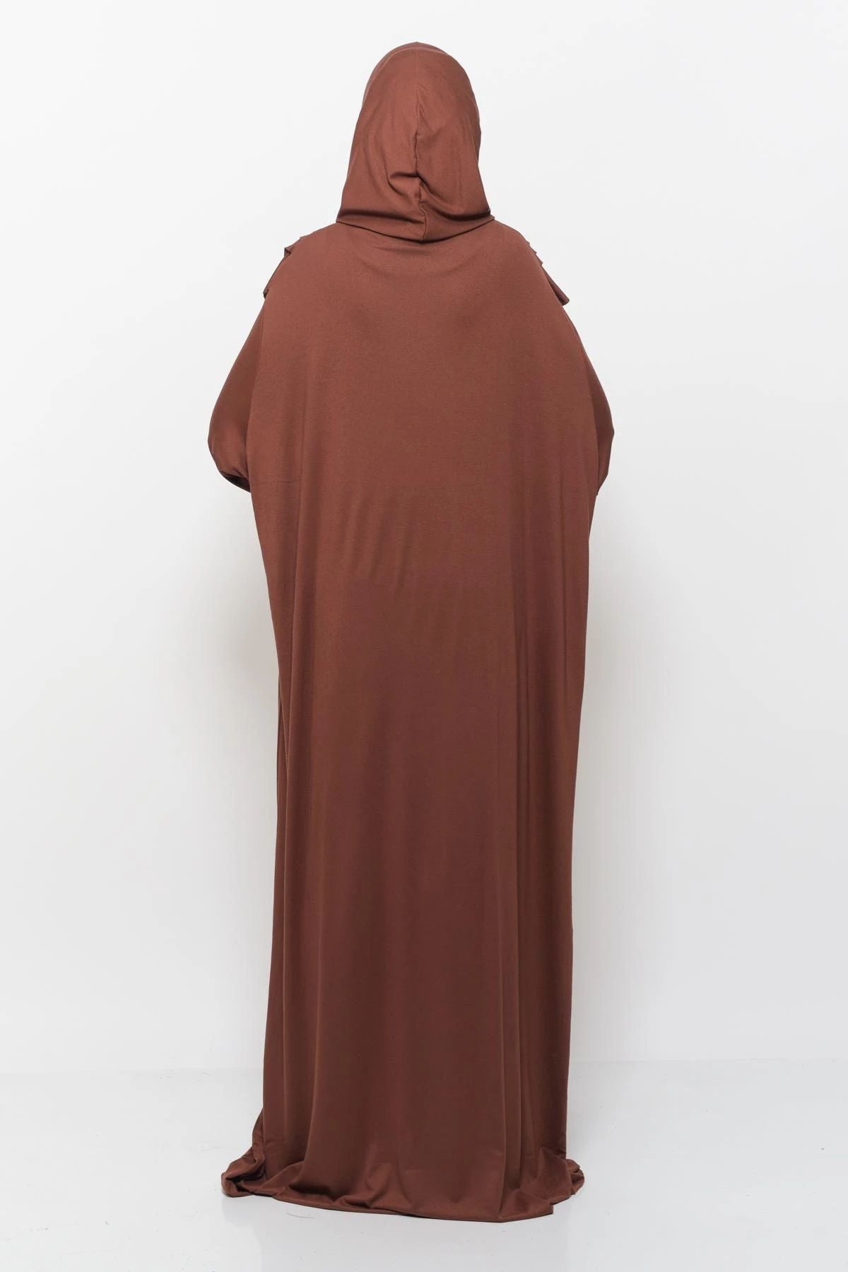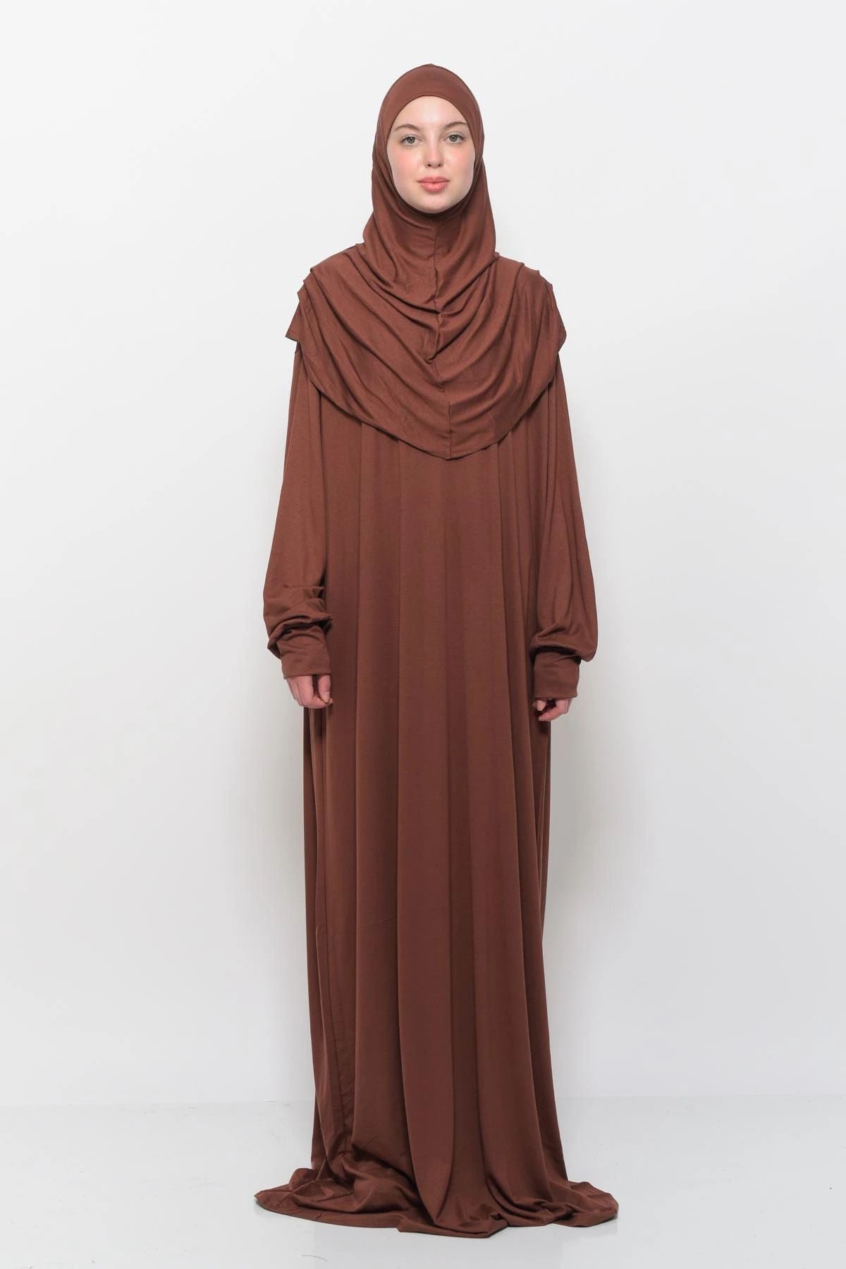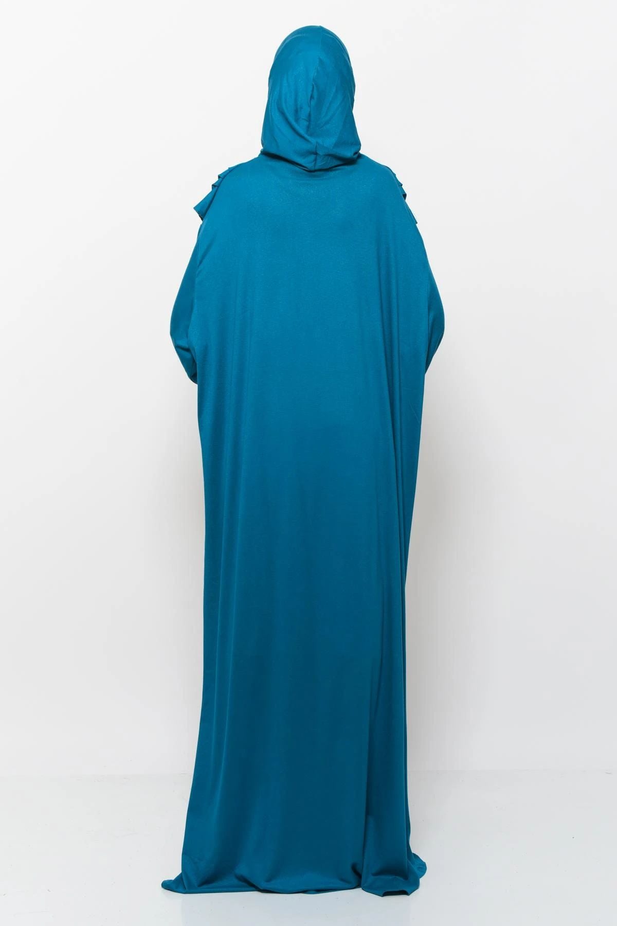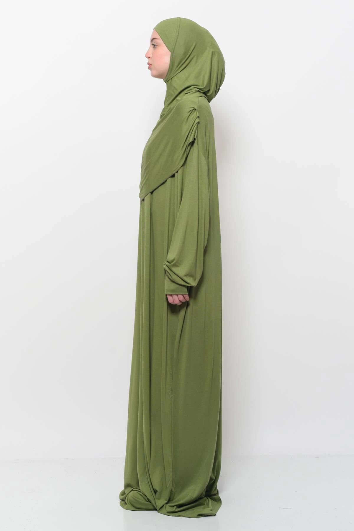 This prayer dress is crafted from soft, breathable cotton fabric, designed as a one-piece garment ideal for women performing Umrah, Hajj, or visiting the mescid. Its comfortable fit and modest style ensure ease of movement and full coverage during prayers, making it a practical and respectful choice for sacred occasions.