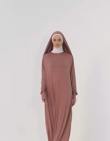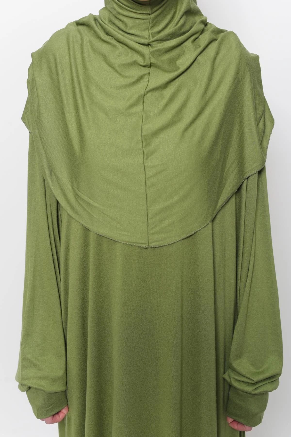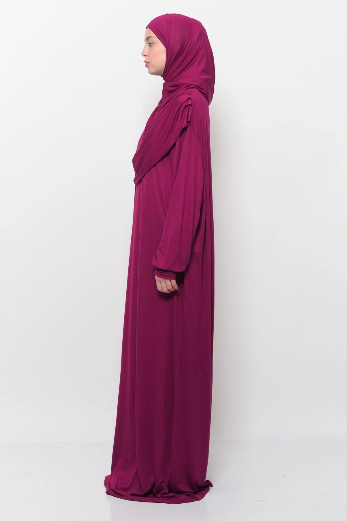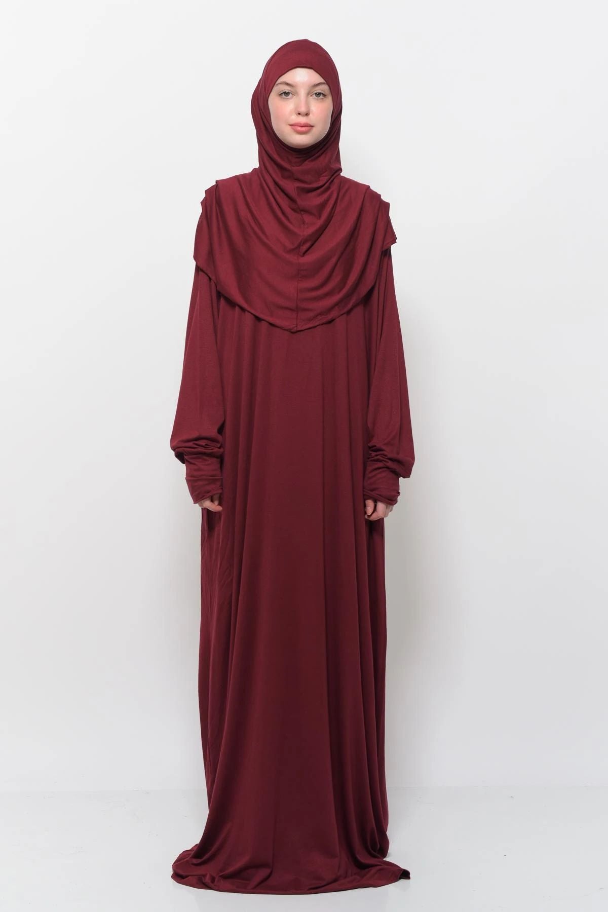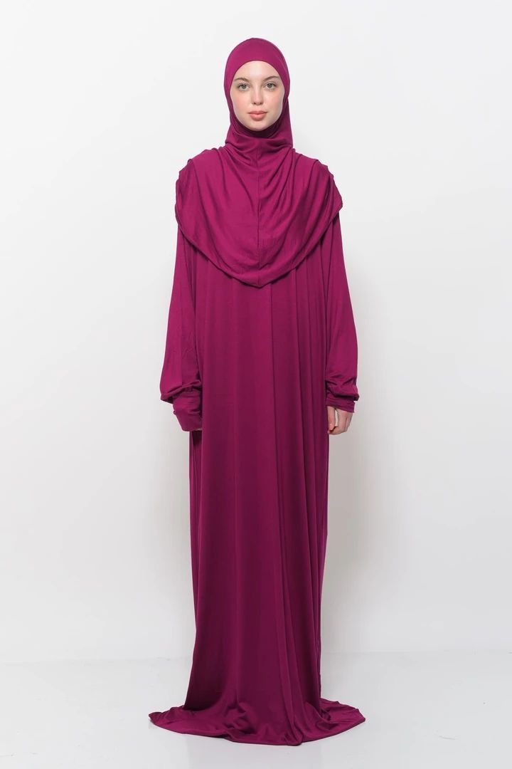 This prayer dress is crafted from soft, breathable cotton fabric, designed as a one-piece garment ideal for women performing Umrah, Hajj, or visiting the mescid. Its comfortable fit and modest style ensure ease of movement and full coverage during prayers, making it a practical and respectful choice for sacred occasions.